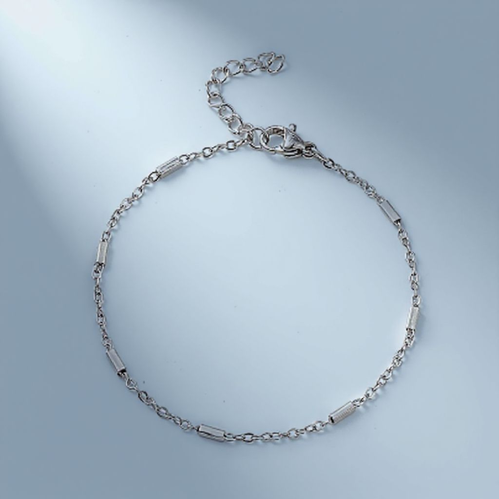 Un bracelet d'une rare délicatesse, avec ses petites perles tubulaires, acier inoxydable doré ou argenté (qualité chirurgicale).