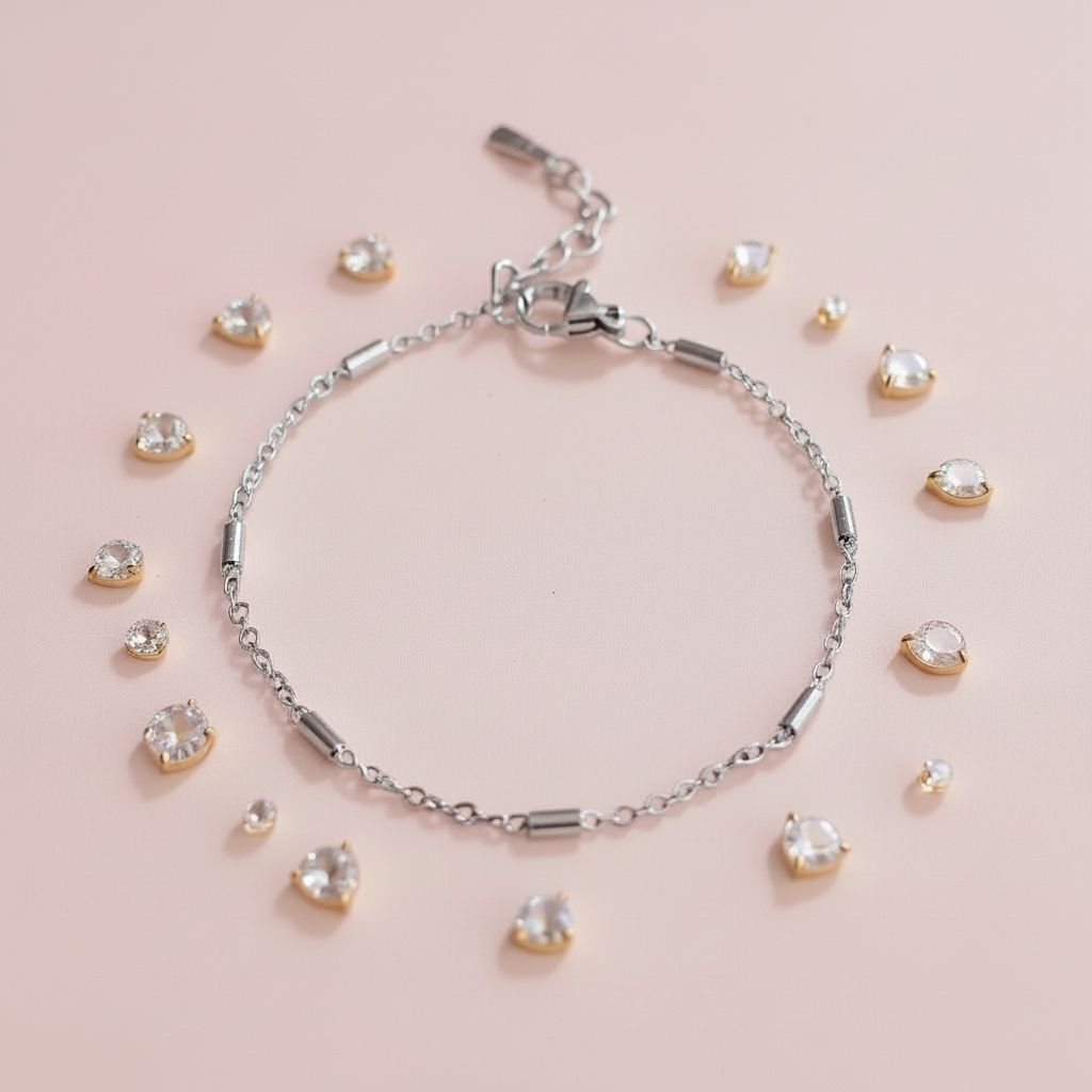 Un bracelet doré ou argenté (acier inoxydable de grande qualité) d'une rare délicatesse, léger à porter, qui habillera son bras d'un doux lien.