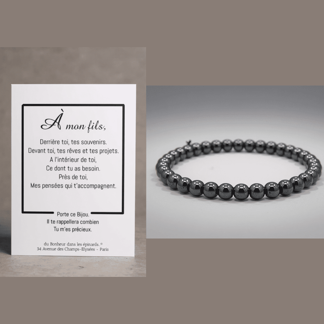 CARTE A MON FILS + BRACELET PERLES NOIRES - F44