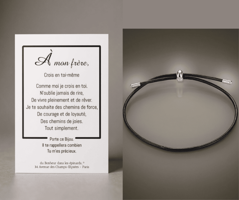 CARTE A MON FRERE + BRACELET noir ou rouge - F46