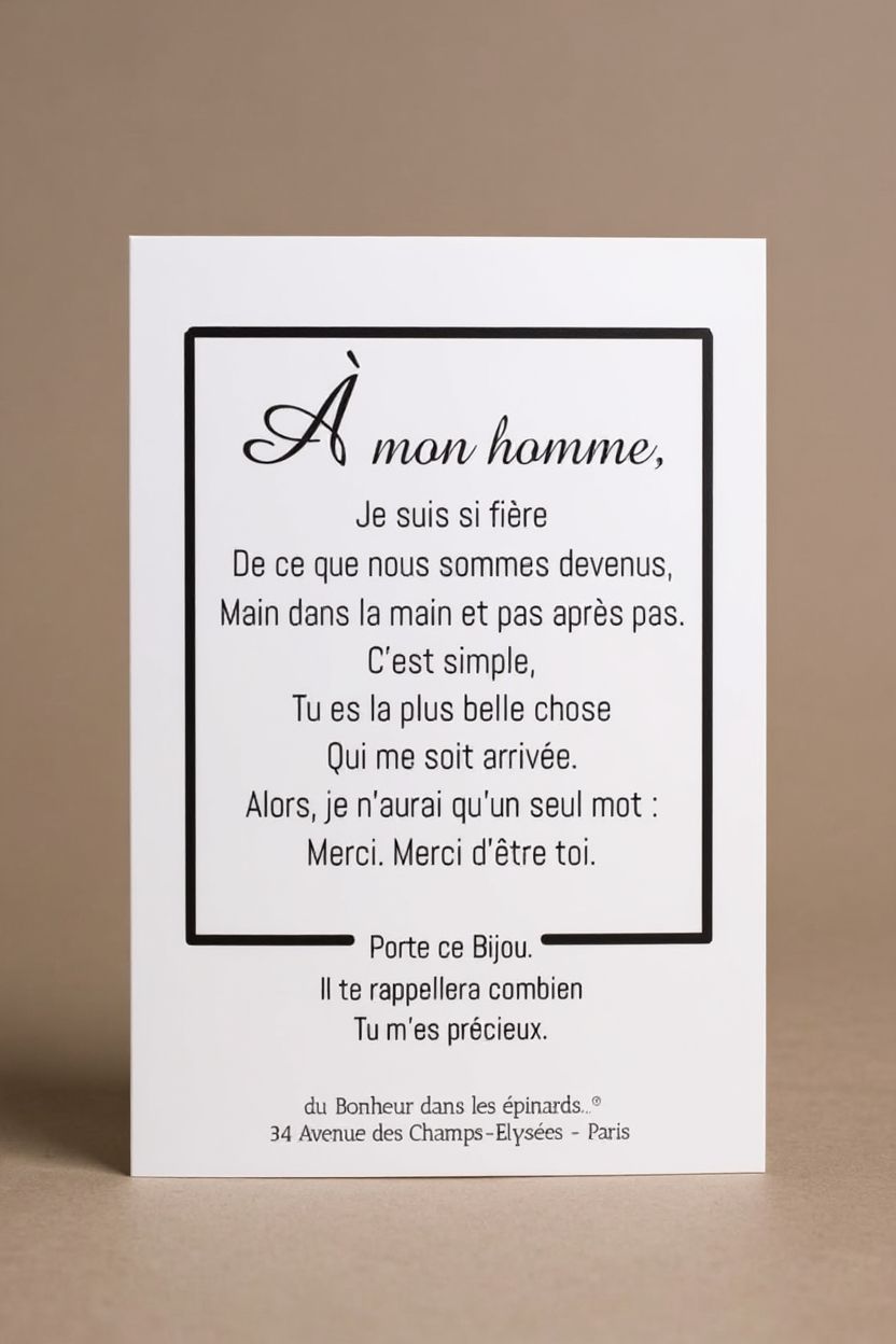 Option : message personnalisé, imprimé au dos de la carte (2 euros).