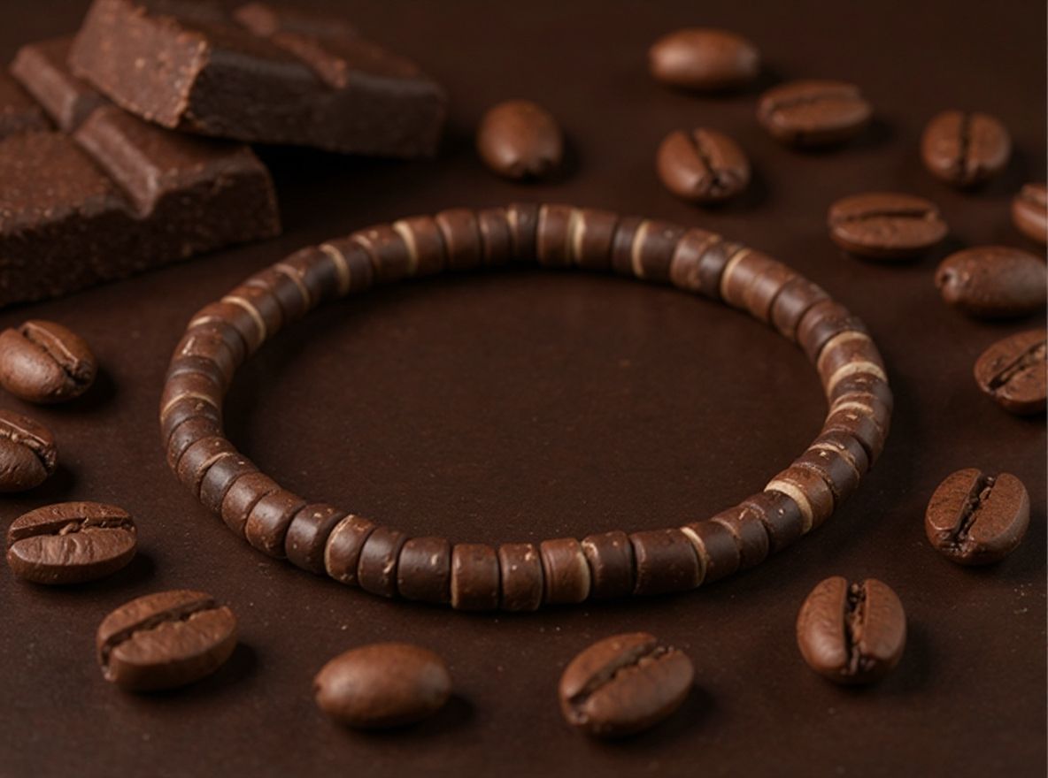 Un Bracelet ajustable (extensible, pour convenir à tout type de bras) avec perles brunes pour un look chic et sobre à la fois.