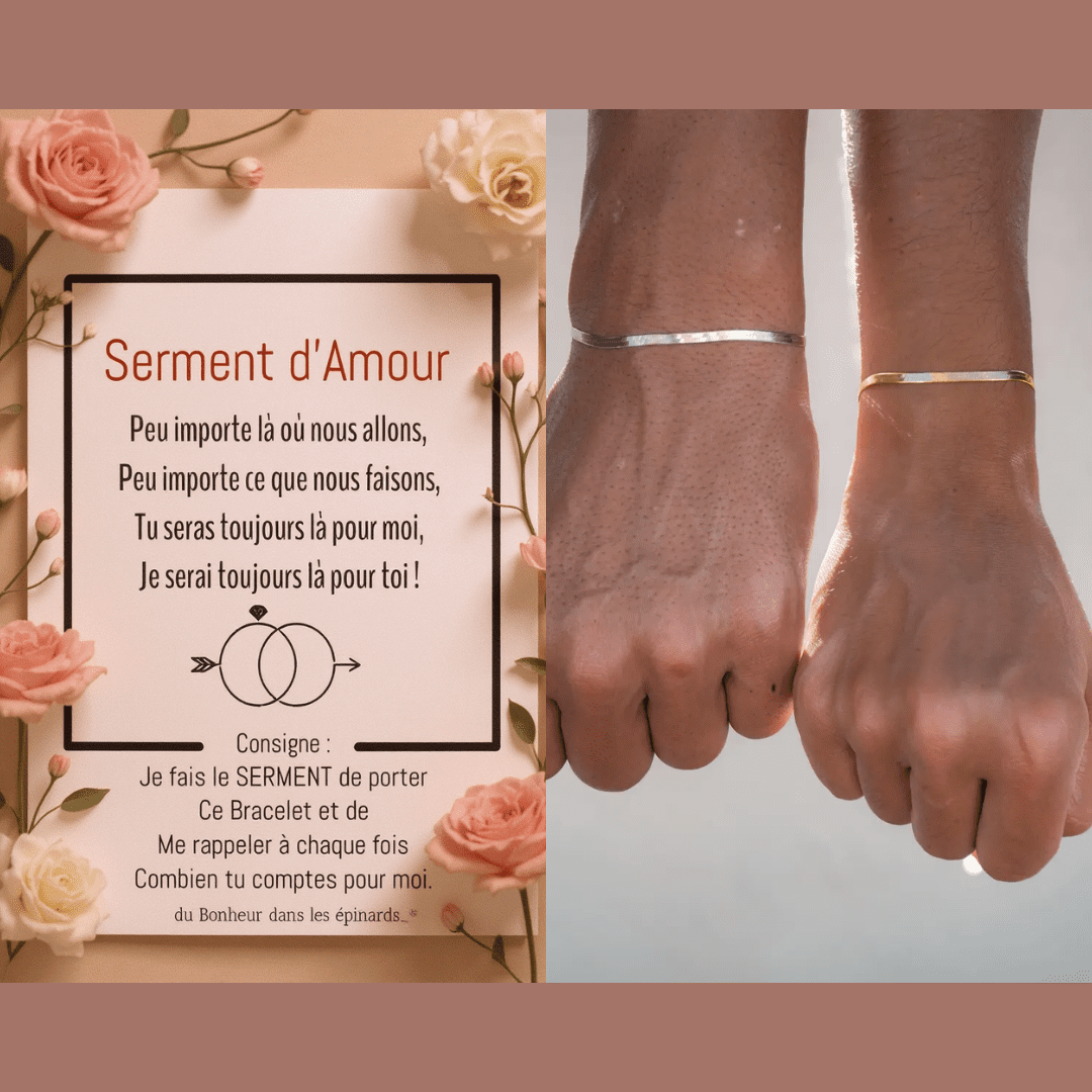 Les bracelets SERMENT ne sont pas simplement des bijoux ; ce sont des trésors émotionnels, des rappels constants de l’engagement pris envers l’autre.