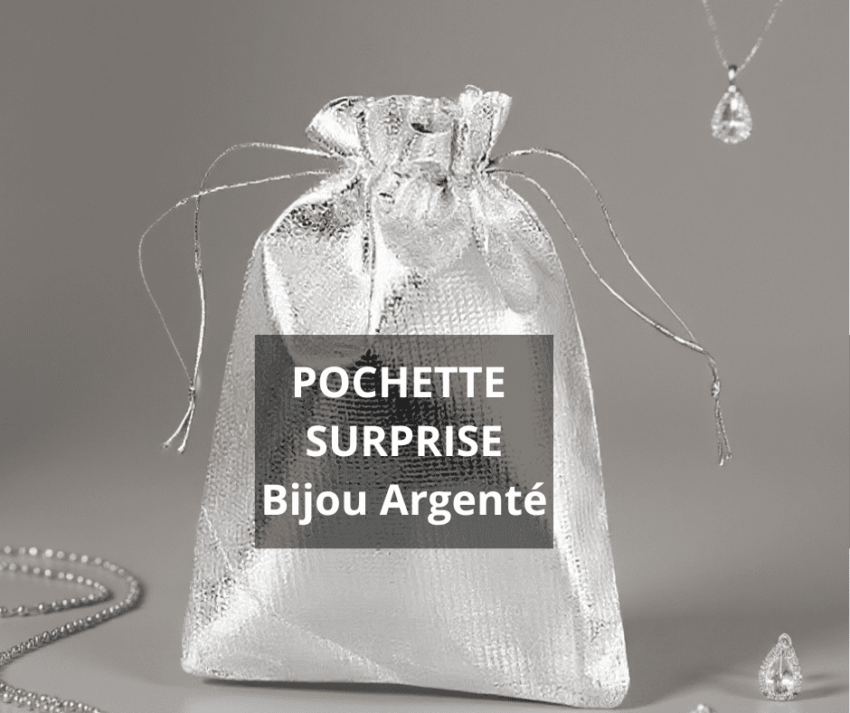 Une Charmante Pochette-Surprise contenant un Bijou Argenté (bague, bracelet, boucles, collier,....) de qualité inoxydable (résiste au temps, à l'eau).